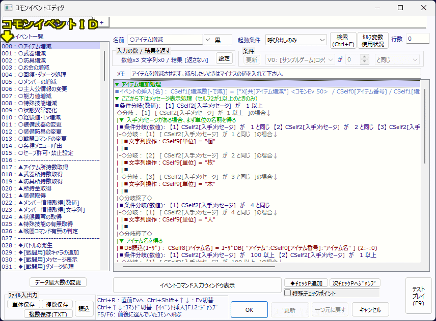 | WOLF RPGエディター(ウディタ)/初心者【サイトトップへ戻る】 ■「イベントID」について (更新:2025/11/02) 「イベントID」について解説します。